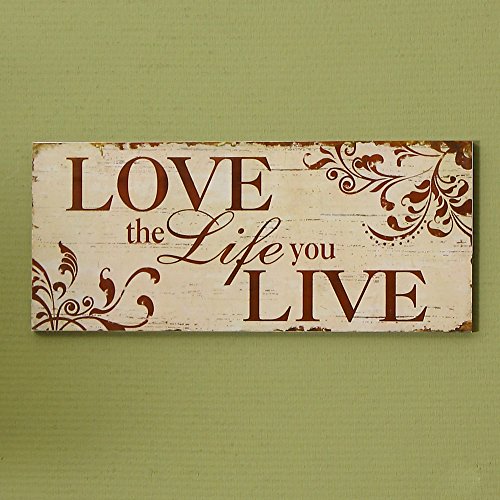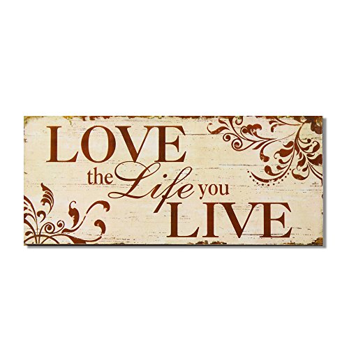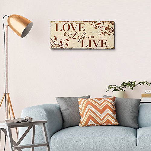 Homebeez Love the Life You Live Decorative Wood Wall Hanging Sign Plaque, Burnt/Orange/Beige