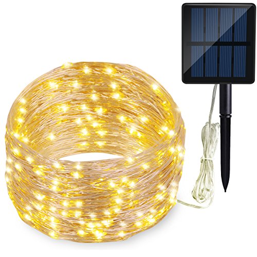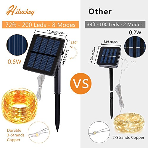 200 LED Solar String Lights with 8 Modes Hiluckey 72 ft Durable Bendable Copper Wire Outdoor Waterproof Decorative Lights for Garden, Patio, Wedding and Christmas Party (Warm White)