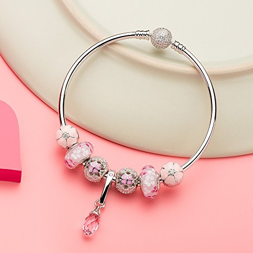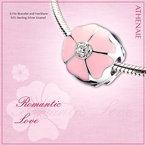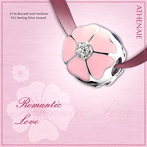 -. Title : ATHENAIE 925 Sterling Silver Clips Romantic Love Pink Sakura Cherry Blossom Enamel Charms Fit All European Bracelets and Bangle Color Pink