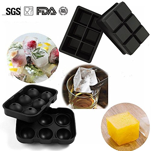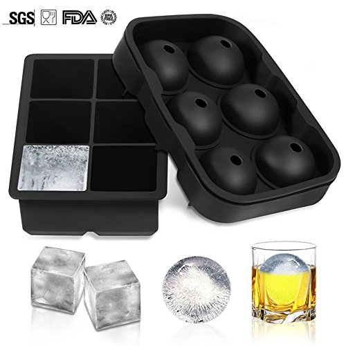Silicone Ice Cube Trays Combo (Set of 2), Sphere Round Ice Ball Maker and Square Ice Cube Mold for Chilling Bourbon Whiskey, Cocktail, Beverages and More - Reusable and BPA Free (Ice balls mold)