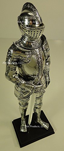 13" Medieval Times Crusades Knight Statue in Armor w/ Sword Chrome Plated