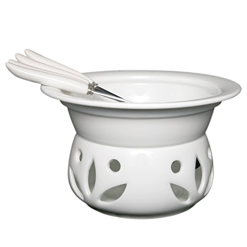 Itikky Cheese Chocolate Fondue Pot Set Porcelain with Forks 9 fl oz White