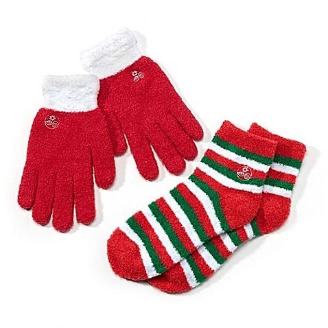(Earth Therapeutics)/Personal Care/Foot Care/DIRECT FROM USA/Earth Therapeutics Holiday Aloe Infused Glove and Sock Set in Red
