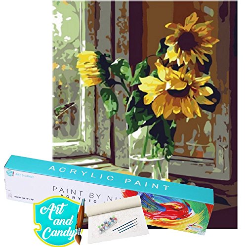 ART & CANDY Paint By Number Kit Celebrity Pop Art Nature Artworks Acrylic Paint Professional Kit DIY Adult Painting Set Canvas Educational Art Therapy Activity (Single pack, Flower)