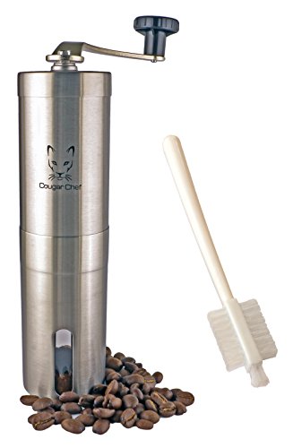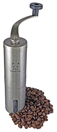 The Cougar Chef manual coffee grinder is a must-have for anyone who loves a fresh, delicious cup of coffee in the morning. Electric blade grinders are noisy, and they often produce an inconsistent blend of fine powder mixed with large bean fragments. The Cougar Chef coffee grinder uses a carefully designed conical ceramic burr, which creates a consistent, even blend every time. The grind size is fully adjustable, so you can make a blend that is as coarse or as fine as you like. Made of high quality stainless steel, this grinder looks great in any kitchen. It's also easily portable, which is perfect for people who enjoy fresh coffee away from home. This grinder pairs well with the Cougar Chef pour over coffee dripper, which is also available on Amazon (search for B01NGUKBCI or Cougar Chef).Feature