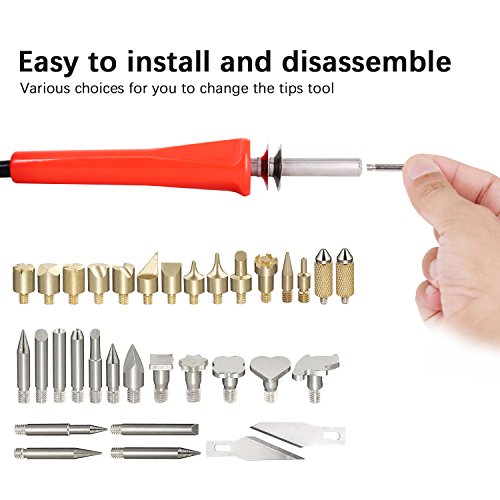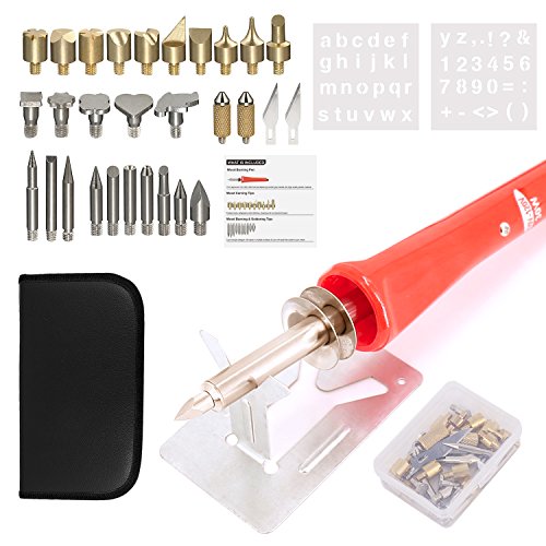 - What You Get - 1 x Wood Burning Pen, 13 x Wood Carving Tips, 5 x Wood Embossing Tips, 11 x Wood Burning and Soldering Tips, 2 x Hot Knife Chuck with 2 x Blades, 2 x Stencils, 1 x Burning Pen Holder and 1 x Tips Storage Box.