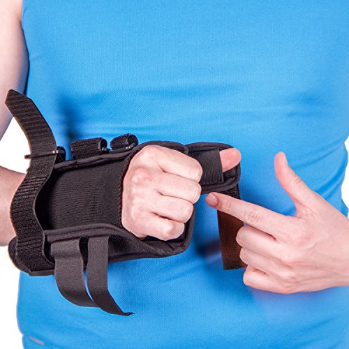 -. Feature : The contouring on the palm side of this thumb and wrist splint allows for full finger movement / You can easily adjust the tightness of this thumb brace with the 3 velcro straps / The inside of this wrist and thumb brace is made of breathable, knit material for comfort / Sizes XS-XL right/left, measure the circumference around your wrist, above your wrist bone