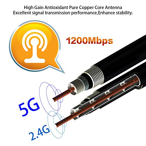 Specifications: Wi-Fi Band: Dual band 2.4 or 5GHz Wi-Fi Performance: 1200Mbps (2.4G 300M / 5G 867M) Support Systems: Windows XP / WIN 7 / 8 / 8.1 /10, Mac OS X 10.4-10.12 Linux ( Kernel 2.6x-4.1x)