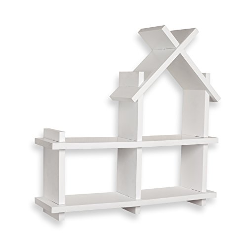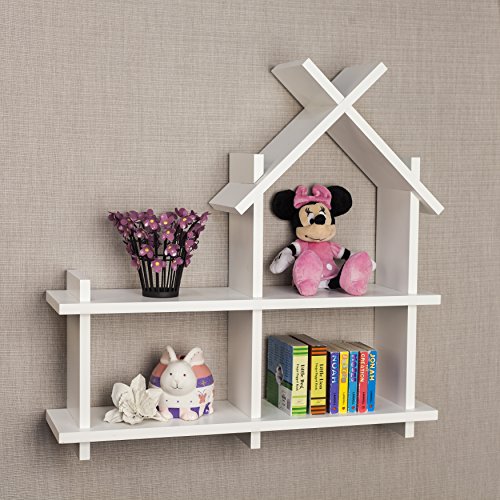 Add a magical touch of playfulness to your child's room with this sweet house wall shelf in contemporary white finish that easily blends with any room decor. This house shelf will provide a fun way to display your child's favorite toys and collectibles while helping contain clutter and keeping things organized. No visible connectors or hanging hardware give the shelf floating appearance and give your child's room a touch of magic! Made of laminated MDF. Minor assembly required. Measures 23.5 x 6 x 23.5". Weight capacity: 20 lbs. Danya BTM is a registered trademark of Danya B Inc.Feature