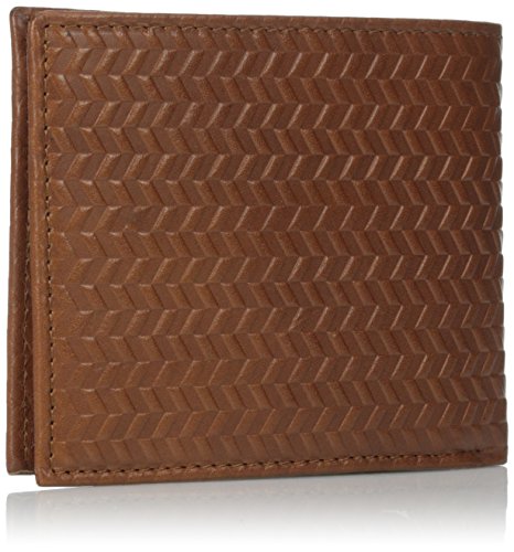 Material is leather Measures 4.25 x 3.5 x .25 inches when closed; 8.5 x 3.5 x .125 inches when openInterior features 6 card slots, 2 slip pockets, and double money slot with cloth liningTextured herringbone pattern on exteriorMetal embossed Hilfiger on frontThis wallet has a very sophisticated and rich look. The herringbone texture adds dimension to the style and the multiple interior compartments makes it convenient to carry around everything you need.Feature