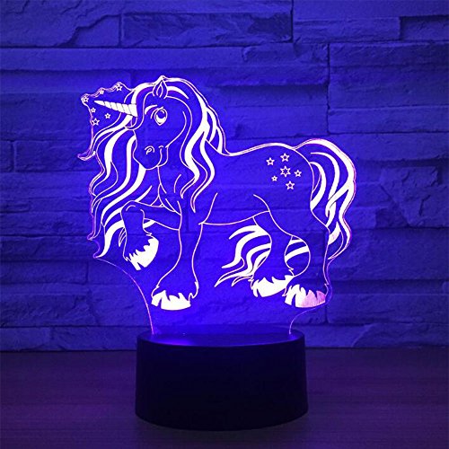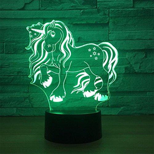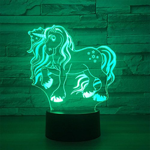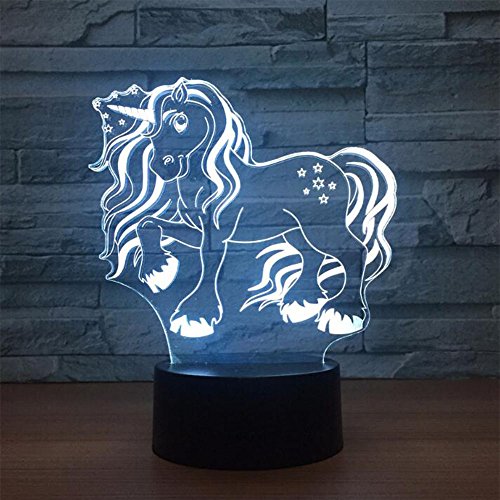 Unicorn 3D Optical Illusion Desk Lamp 7 Colors Change Touch Button USB Nightlight Produces Unique Visualization Lighting Effects Art Sculpture Light