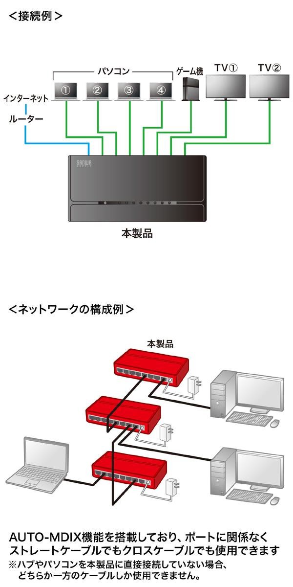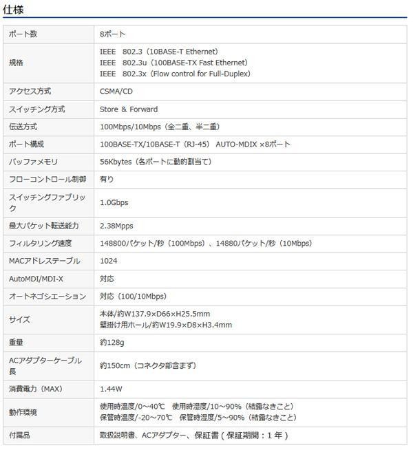 10/100BASE-T対応の8ポートスイッチングハブ。