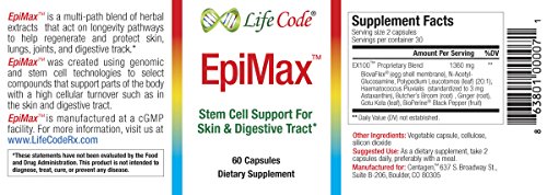 -. Feature : EpiMax supports natural regeneration of skin, joints, digestive tract, lungs and mucus membranes. / Promotes younger looking skin and increased resistance to sunburn from the inside out! / Helps the digestive system function more like that of a healthy young person. / Formulated by one of the world's top anti-aging scientists. / 90 day money back guarantee. Made in the USA in a cGMP certified manufacturing facility.