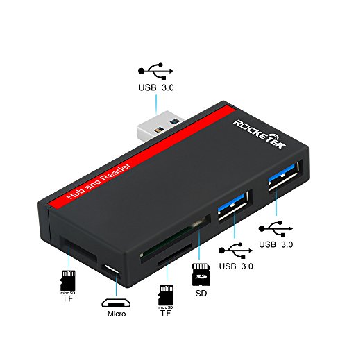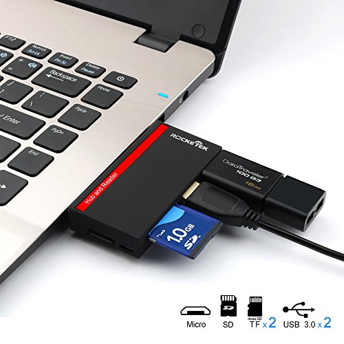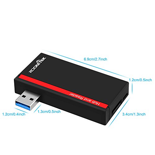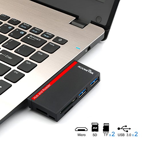 Rocketek USB 3.0 Hub with SD / TF Memory Card Reader Combo for Laptop / PC / Surface Pro / Mac - Support 2 Micro SD Cards + 1 SD Cards +2 USB Combo Adapter