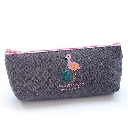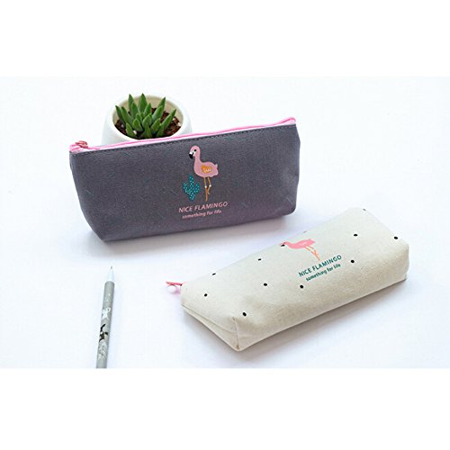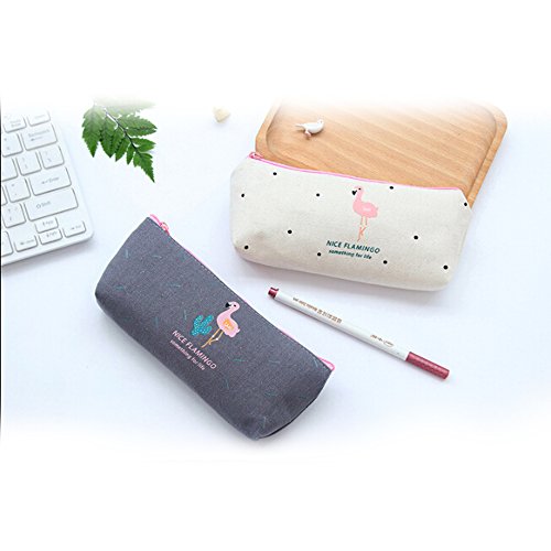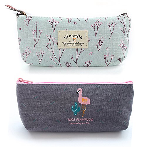 Set of 2 Pencil Case, Mavis's Diary Flamingo and Flower Pattern Canvas Pen Case Pencil Holder Cosmetic Pouch Bag Zipper Box - Grey&Light Blue