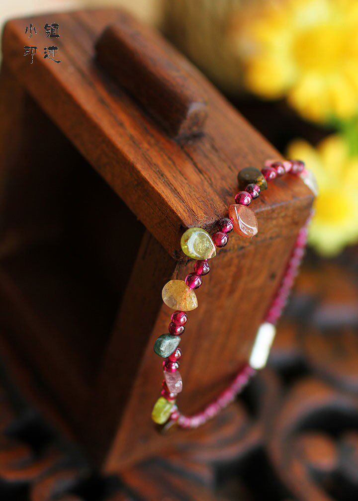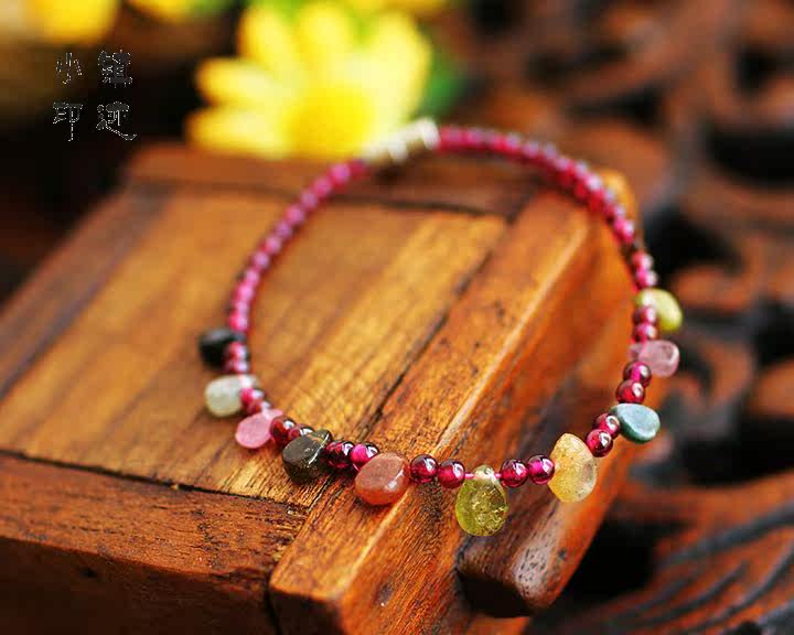 Specifications: Bracelet total length of 17.5cm, tourmaline and every single diameter of about 6mm, garnet diameter of about 3mm