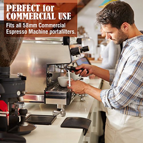 - MADE FOR COMMERCIAL USE & THE SERIOUS HOME BARISTA: Fits all 58mm Commercial Espresso Machine portafilters. Plus Home Espresso machines including Quickmill, Rancilio, Pasquini, Gaggia, ECM Botticelli, Giotto/Cellini and the Breville BES900XL. Food Grade Stainless Steel Coffee Tamper 58mm, Unibody Design, 1.4lbs solid heft for the perfect crema and best coffee.