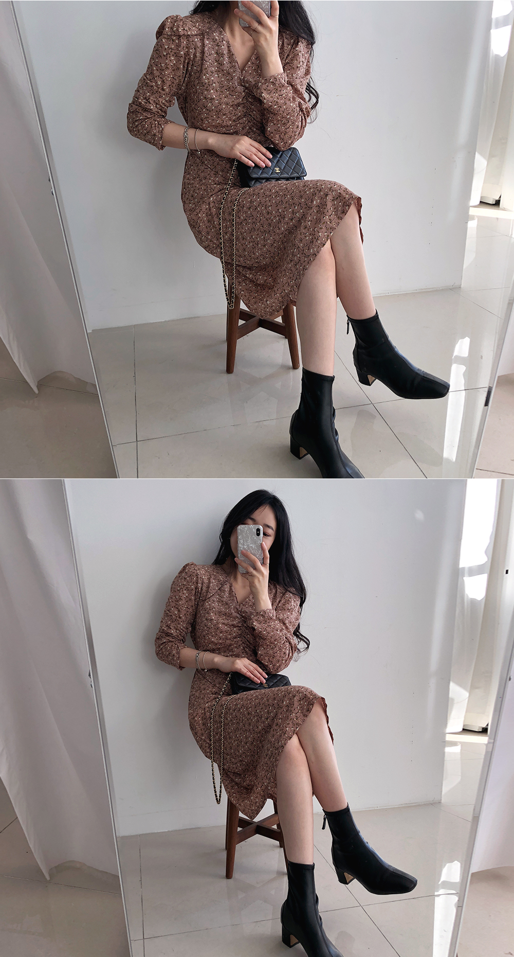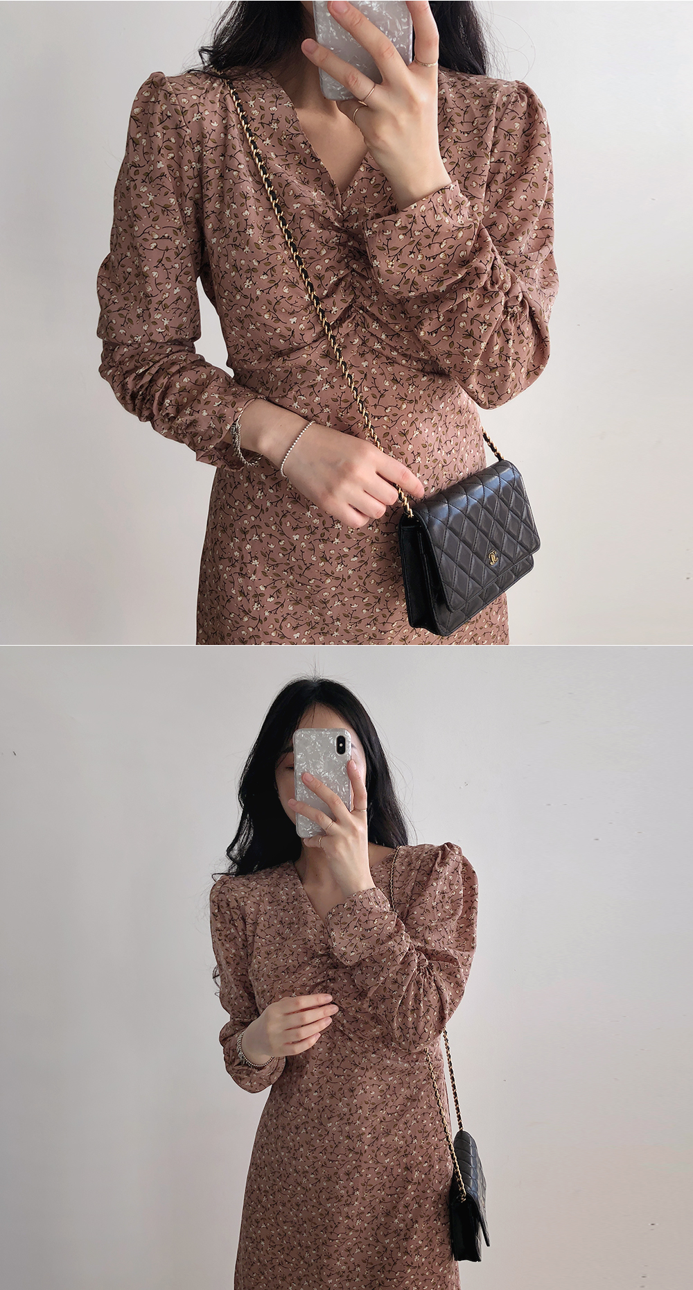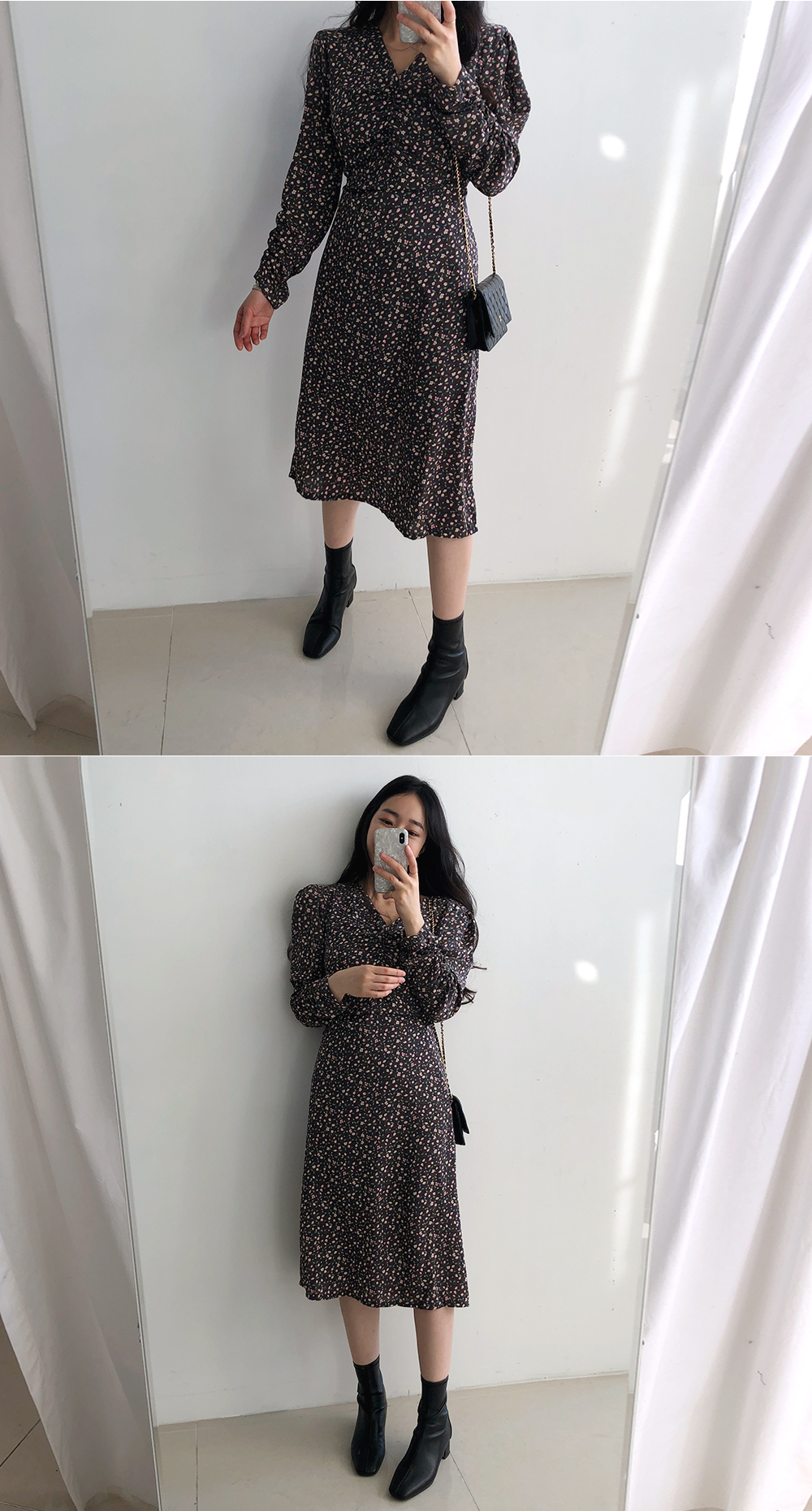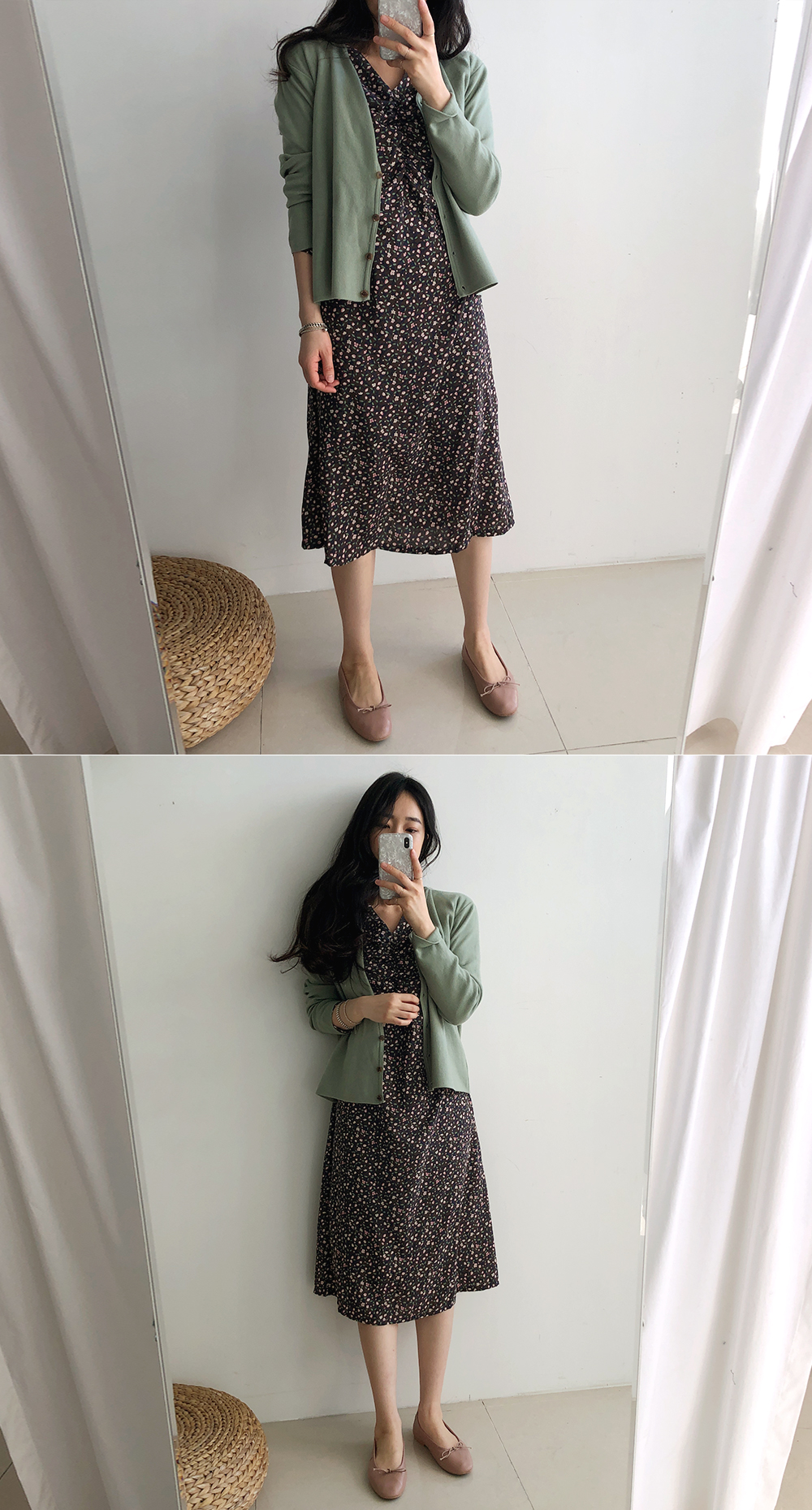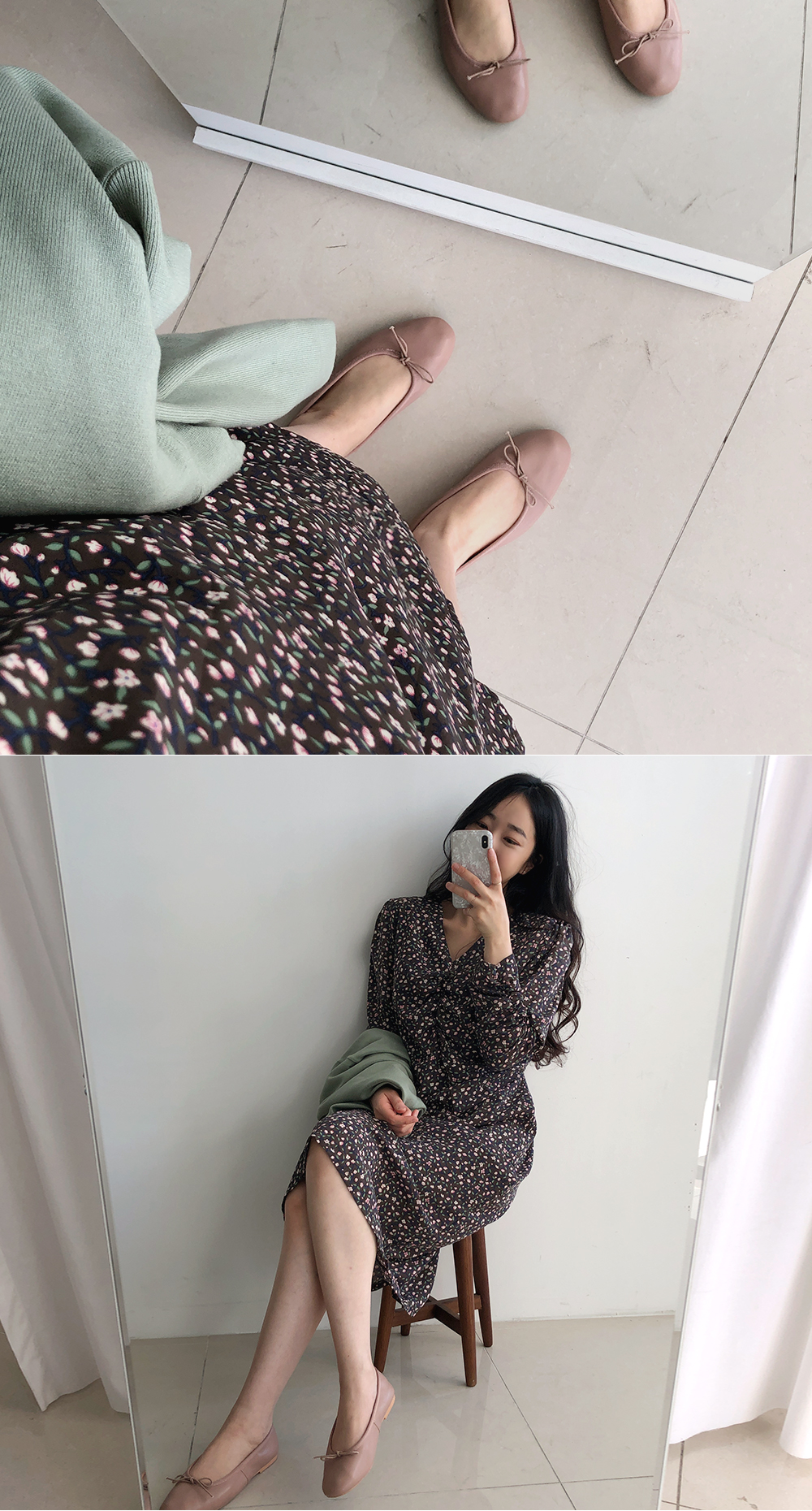 부담스럽지 않은 잔 플라워 패턴으로 다양한 코디에