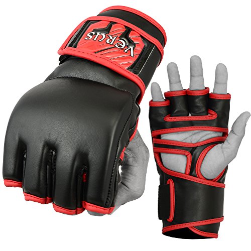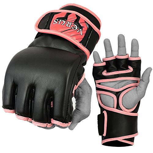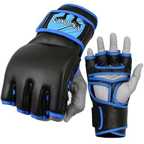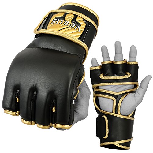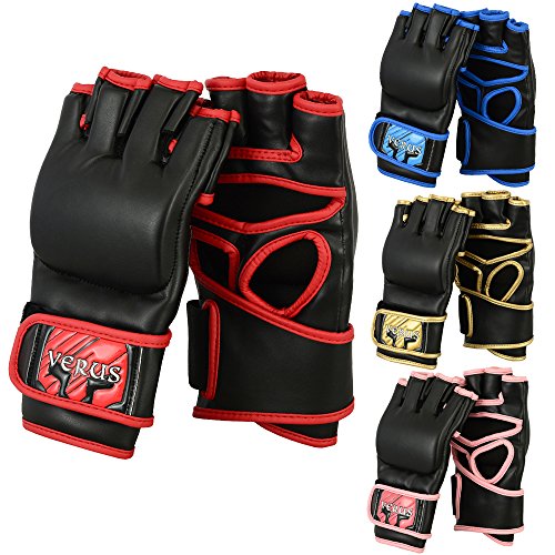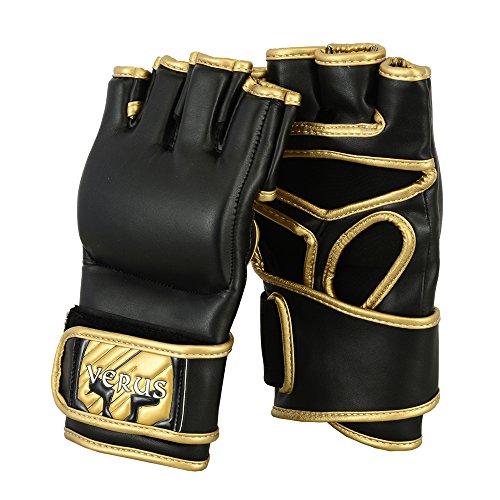 -. Binding : Misc. -. Brand : Verus -. Feature : VERUS MMA Gloves are made from high quality rex leather with Pre-Curved finger design / Triple padded and reinforecd with foam and shock disspating gel lining around knuckle area for advanced shock absorption / Quick-EZ Velcro closure with extra long strap provides enchanced wrist-support and a snug fit / Resilient Maya High Leather construction makes these gloves stubbornly durable and long lasting / Moisture wicking synthetic mircofabric draws moisture away from skin enabling hand-comfort and breathability -. IsAutographed : 0 -. IsMemorabilia : 0 -. Label : Verus -. Manufacturer : Verus -. ProductGroup : Sports -. ProductTypeName : SPORTING_GOODS -. Publisher : Verus -. Studio : Verus -. Title : VERUS Training Punching Bag Mitts MMA Gloves Muay Thai Sparring Cage Fight UFC