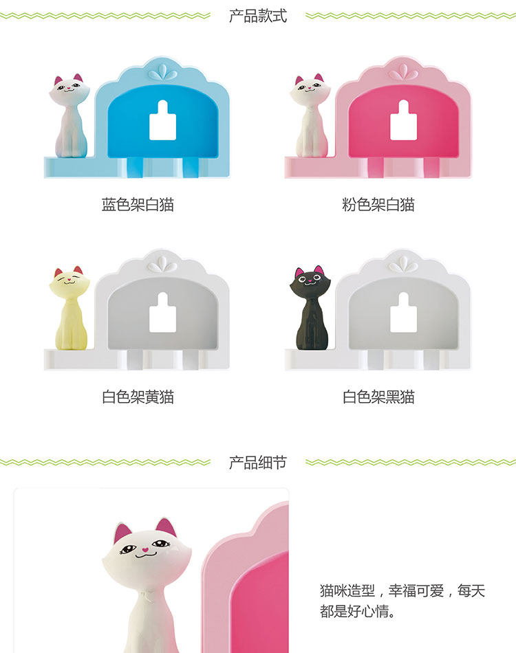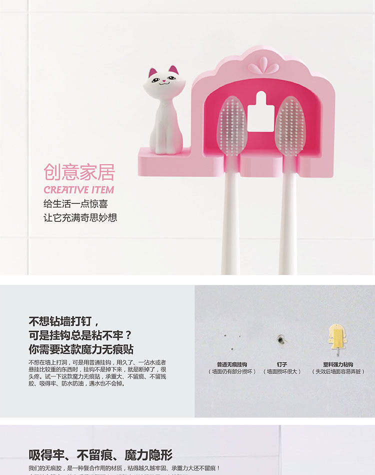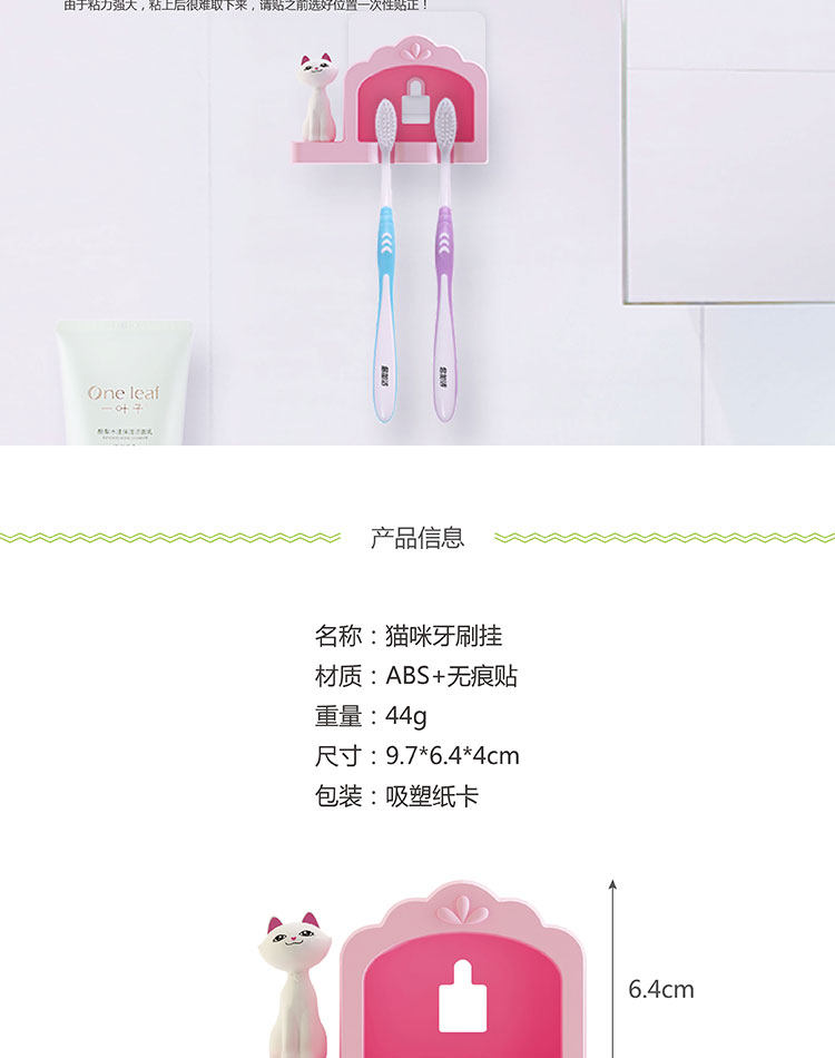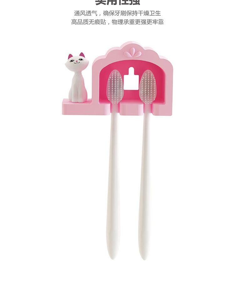 牙刷架猫咪双人免打孔无痕贴创意浴室情侣牙刷挂强力吸盘牙具挂架