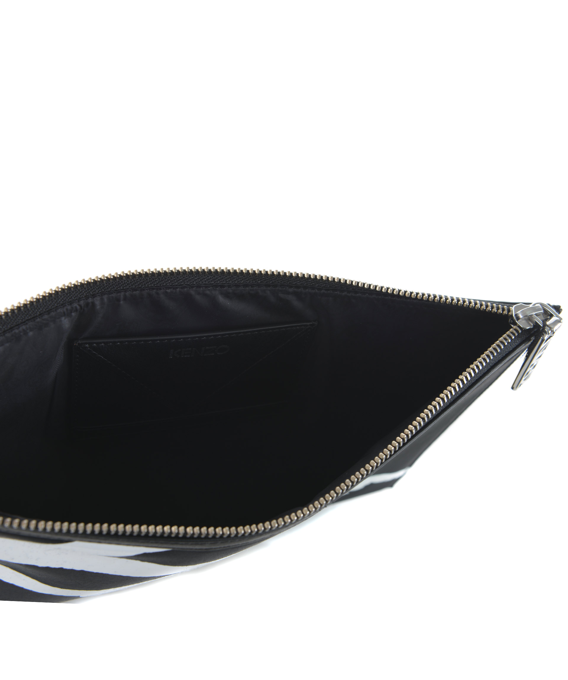Pochette Kenzo in nylon imbottito Nero. Logo "signature" in silicone bianco. Chiusura con zip. Tasca piccola interna. Foderata. Misure: altezza 22 cm, larghezza 30 cm. 100% poliuretano