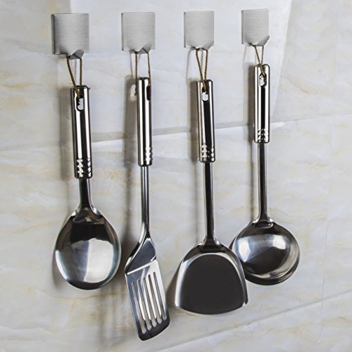 Adhesive Hooks, High Powerful 3M Wall Hooks Hanger 304 Stainless Steel Waterproof Hooks (Max Load up to 6Lbs) for Home Kitchen Bathroom Coats/Hats/Keys/Bags/Robes/Towels (4 Pack) by Cagonlife
