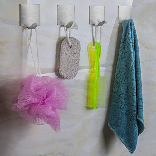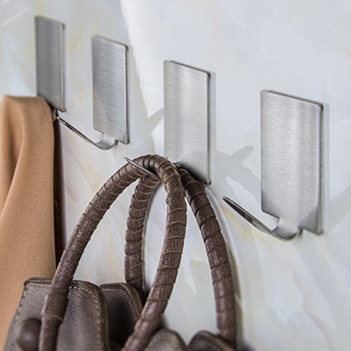 - HIGH POWERFUL ADHESIVE HOOKS- Premium quality, wall mounted and made from waterproof brushed 304 stainless steel and Ultra Strong 3M pre-taped adhesive bear weight up to 6Lbs without damage to the wall, never worry to fall off or rust