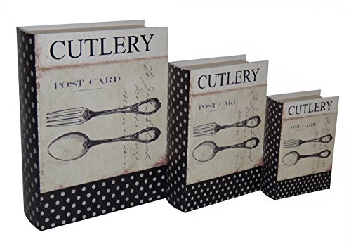 - Set of 3 (large, medium, small) vintage cutlery themed book boxes.