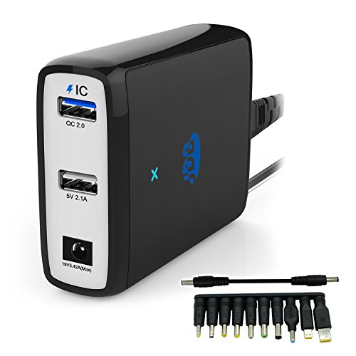 - Feature : The 3 in 1 Charger with one DC port and Dual USB port can charge three of your Notebook, Tablet, iPhone, iPad, Android Smartphones at the same time. / The Laptop Adapter port fits for various Notebook, such as Dell, IBM, HP and more. Its max output is 19V / 3.42A. / USB Port with Quick Charge 2.0 Technology Charges compatible devices up to 75% faster than a standard charger. For iPhone, also charges much faster than an original charger. / Extra Portable, Extra Smart: Notebook Charger is much lighter than a normal one. IC Technology can adjust the voltage for different device. / What You Get: JDB® 65W Multi Function Power Adapter * 1, Power Cord * 1, DC Power Connector * 10, DC Converter Cable * 1, Friendly Customer Service.