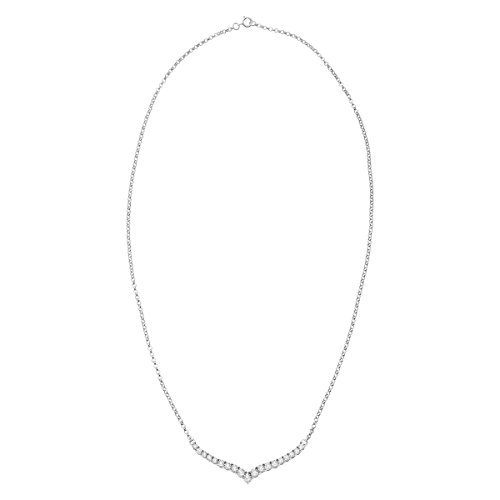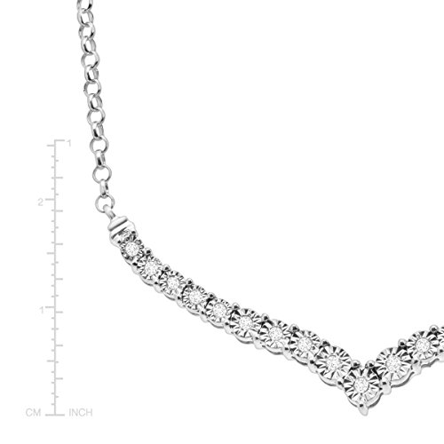 Stay on-trend with this modern chevron-inspired necklace! Round-cut diamonds, totaling 1/4 ct, are illusion-set in sterling silver for endless shine. Feature piece measures 13/16 by 2 inches with a total length of 18 inches.Feature