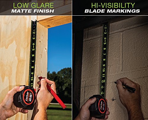 Lufkin L1025B Black Widow 25' Tape Measure Low Glare Matte Finish Hi-Visibility Blade Markings