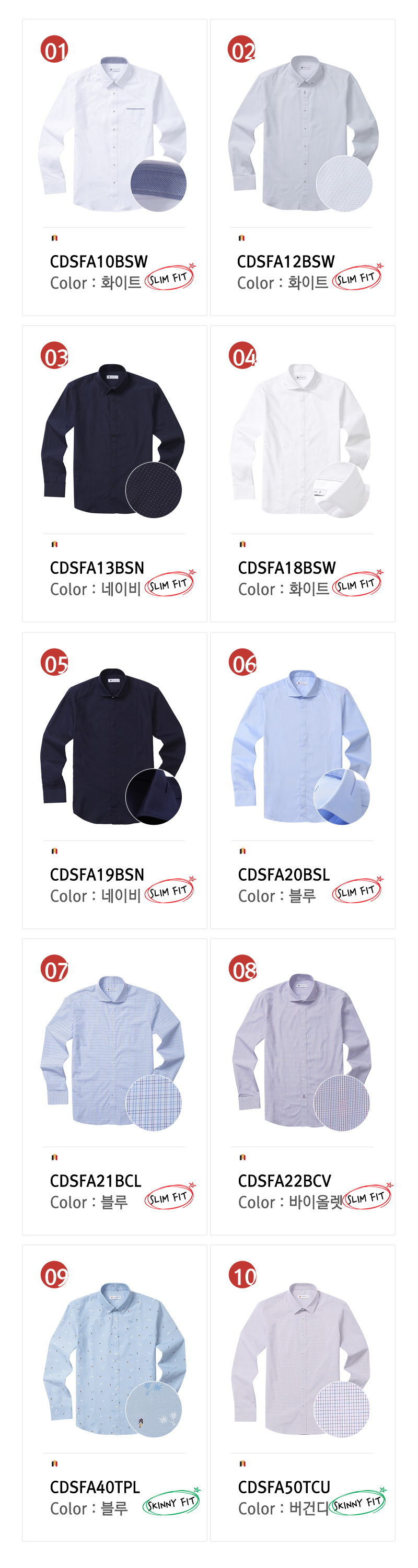 긴팔셔츠44종티셔츠3종면스판7종점퍼3종자켓4종팬츠28종