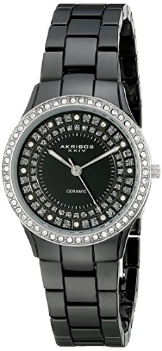 -. Title : Akribos XXIV Women's AK509BK Ceramic Slim Quartz Black Bracelet Watch