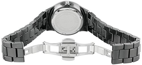 -. Feature : Black sunray dial, sparkling glitter outer dial with crystal hour markers / Silver-tone, luminescent, hour and minute hands / Silver-tone bezel is adorned with dazzling crystals / Slim ceramic case and bracelet / Water resistant to 99 feet (30 M): withstands rain and splashes of water, but not showering or submersion