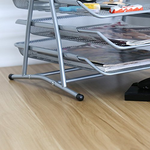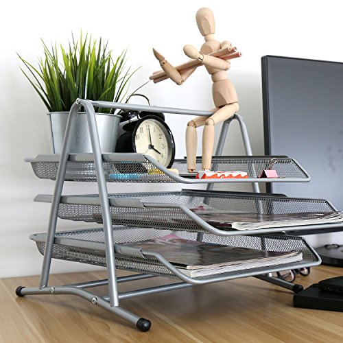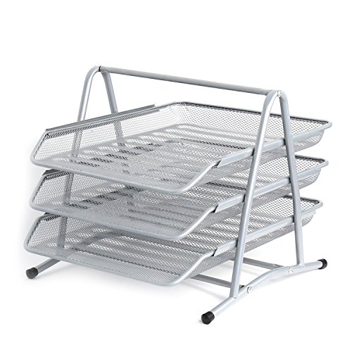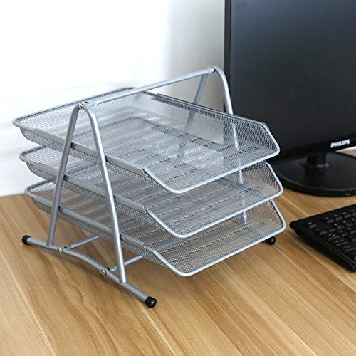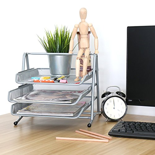 Kinbor 3-Tier Steel Mesh Collection Desktop Tray Document Office Organizer, Silver