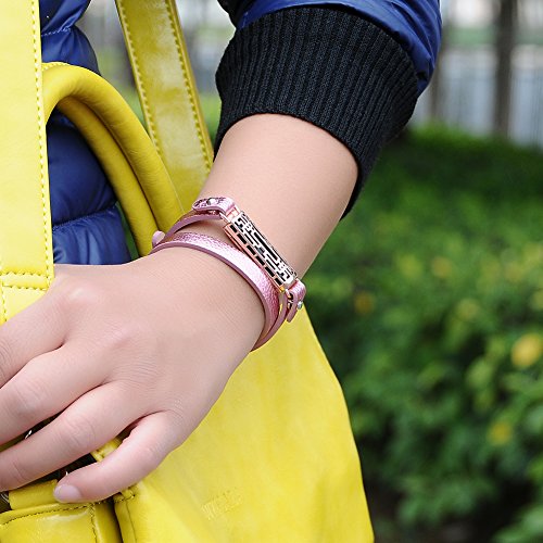 Hagibis Genuine Leather Bands with Metal Pendant for Fitbit Flex 2