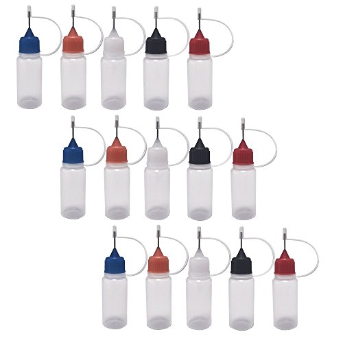 15 Pack, 10ml, Multi Color Caps Needle Bottle dropper bottle eliquid bottle liquid bottle squeeze bottle Steel Needle TIP Dropper Bottles