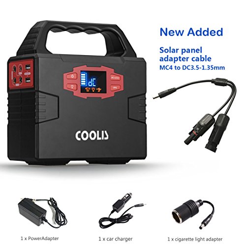 Coolis 150Wh Portable Solar Power Inverter Generator, with Silent 110V AC *2 / 12V DC *3 / USB *2 Output, 40800mAh Lithium Polymer Battery