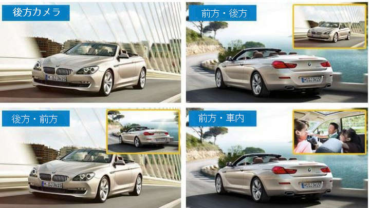 ●3つのカメラを使って映像を表示(同時表示は2カメラ)録画、通常では記録できない異なる角度でもしっかりと記録する事ができます