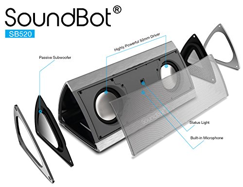 -. Title : SoundBot® SB520 3D HD Bluetooth 4.0 Wireless Speaker for 15 hrs Music Streaming & Hands-Free Calling w/ Passive sub woofer, 5W + 5W 50mm Driver Speakerphone, Built-in Mic, 3.5mm Audio Port, 2200mAh Lithium-ion Rechargeable Battery for Indoor & Outdoor Use