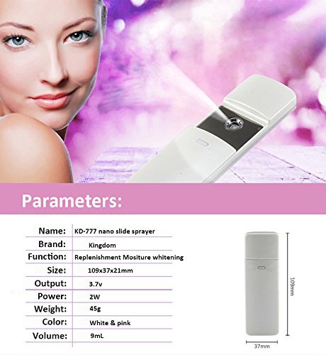 4) Calm Skin: skin will suffer from stimulation, pain and itches after sunburn, applying mask or skin massaging, the Nano steamer can help to recover skin to normal..Main Amazing Function : 1.whitening moisturizing water replenishing for face hair 2.Soothes& calms skin wrinkle reduction