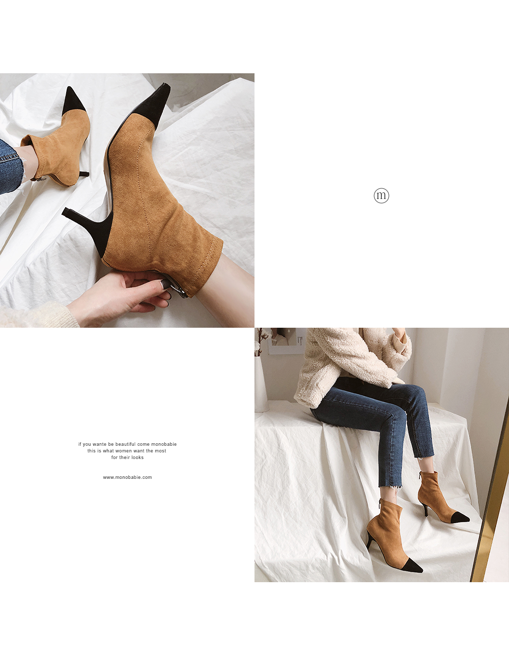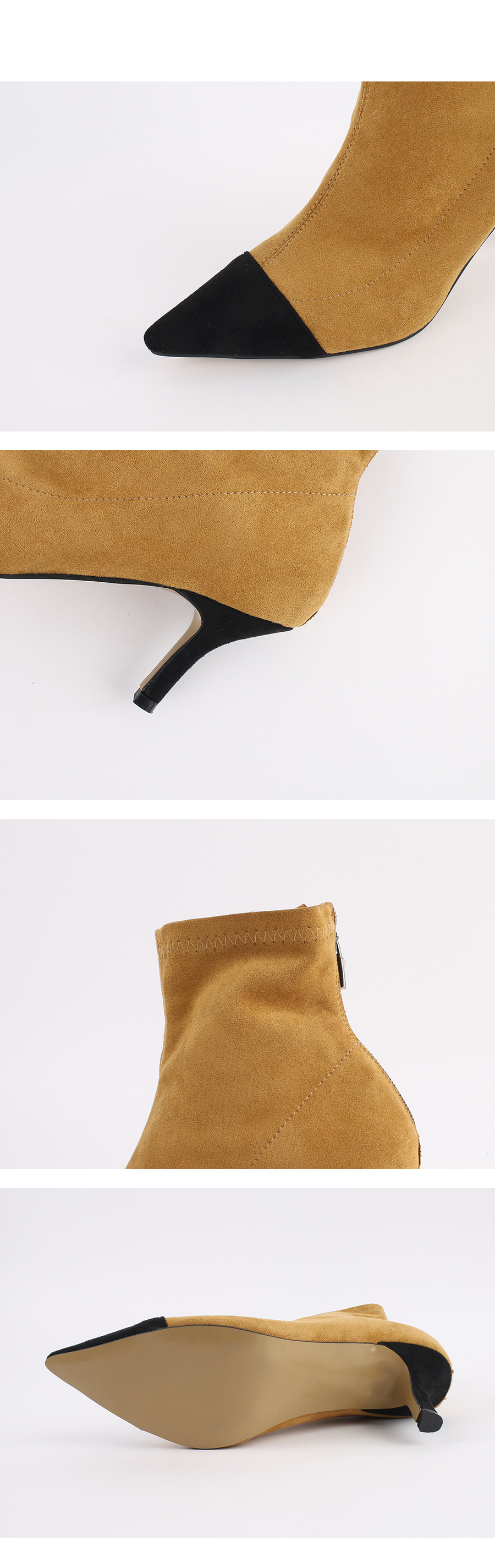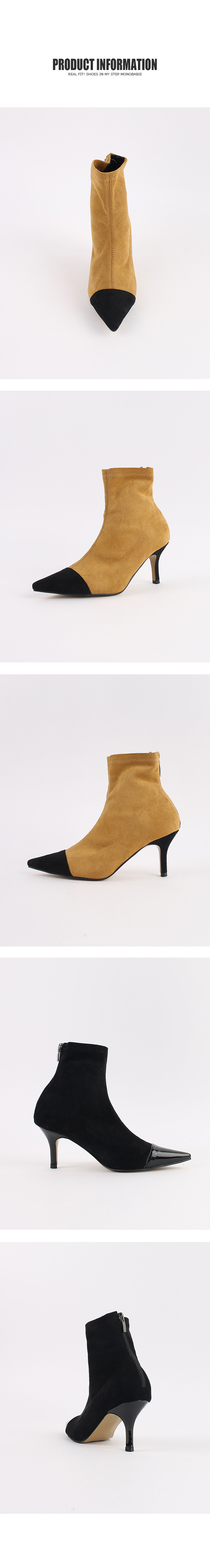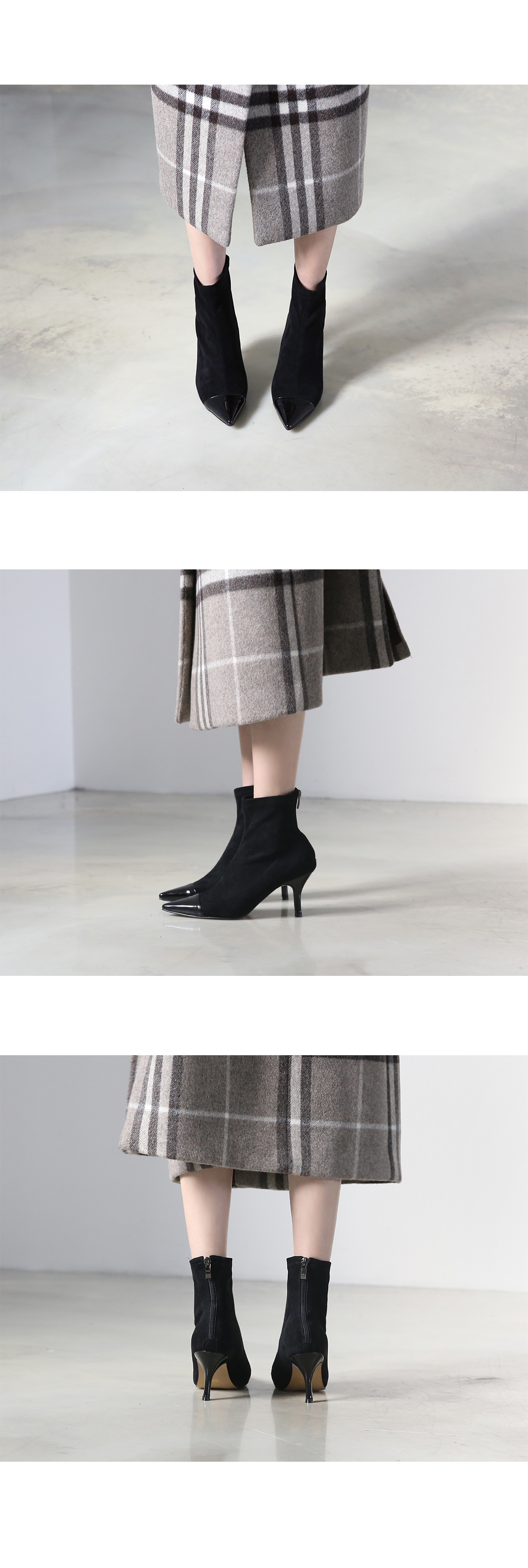 스틸레토 쉐입이 섹시미와 여성미를 동시에 연출시켜주는 앵클부츠입니다.