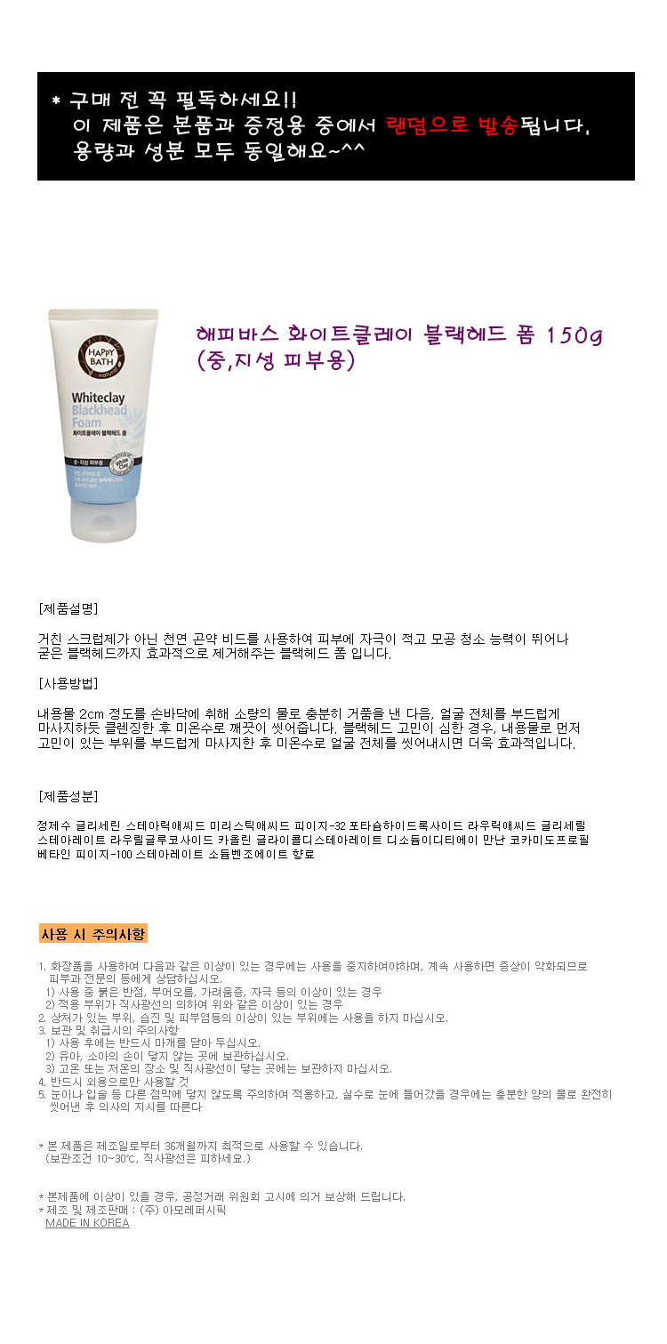 - 사용방법충분히 거품을 낸 뒤 마사지하듯 문지른 후 물로 깨끗이 씻어냅니다.