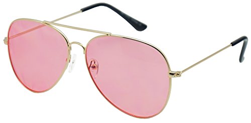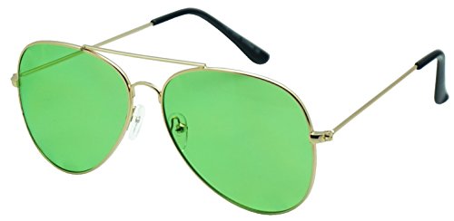 Classic gold metal aviator featuring red, green, yellow, blue, and purple lenses.