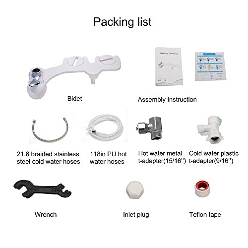 High quality components-The bidet has two high quality adapters , braided steel cold water hoses and PU hot water hoses ensure won’t leak.