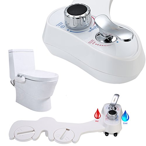 Anzone Bidet Posterior Feminine Self-Cleaning Wash Dual Nozzles Adjustable Water Pressure Hot and Cold Water Non-Electric Manually Operated Bidet Sprayer Toilet Seat Attachment