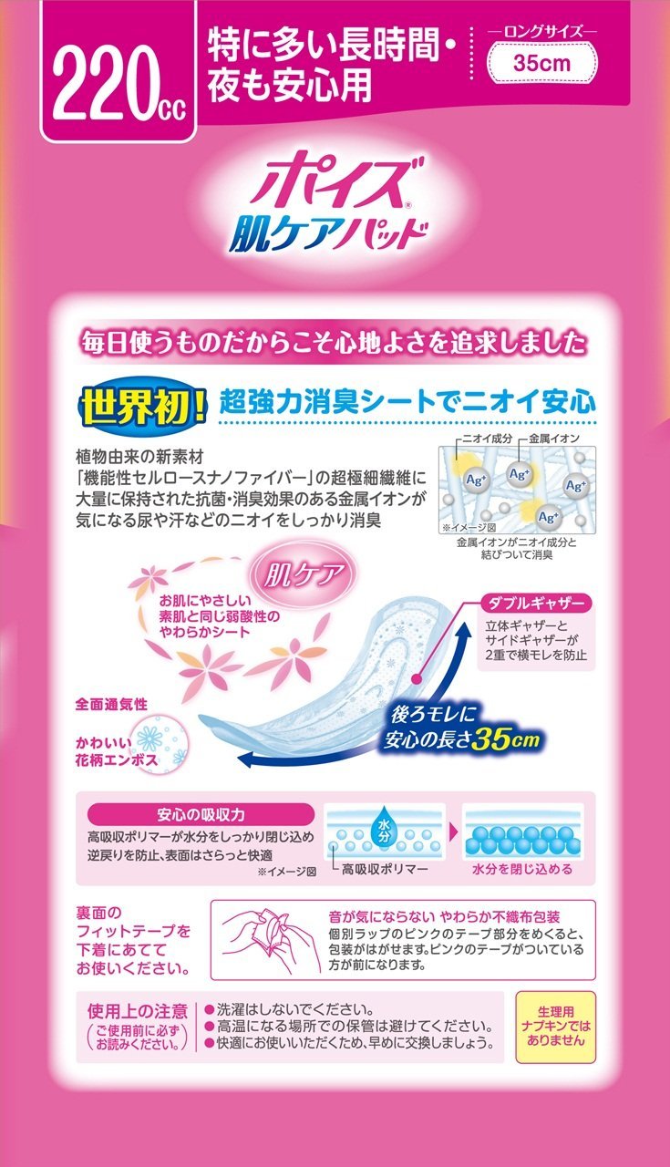 Approximate amount of absorption 220 cc, especially suction pad type for long time and night safety.