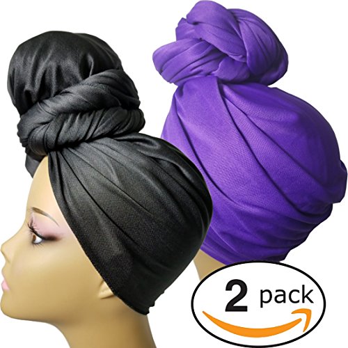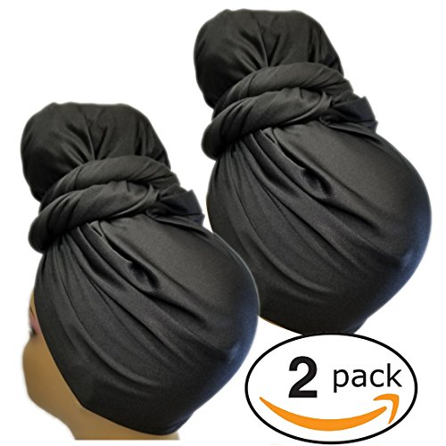 | (HelloBeauty)/Accessories/Cold Weather Accessories/DIRECT FROM USA/Stretch Head Wrap - Long Black Head Wrap Turban Hair Scarf Tie 2pcs set or 1Pcs |