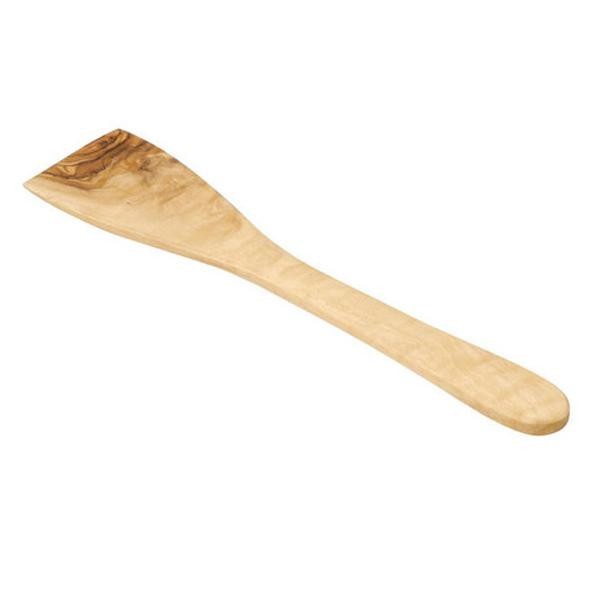 木製のスパチュラです。堅くて加工が難しいと言われるオリーブの木を、職人がハンドメイドでひとつひとつの木目や節の個性を生かして仕上げています。