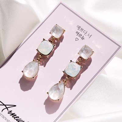 블링블링 예쁜 재료만 모아모아~ 제작된 귀걸이에요.마이크로컷팅으로 고급스럽게 세공된 크리스탈비즈와 물방울호마이카가 드롭귀걸이로 디자인 되었답니다.